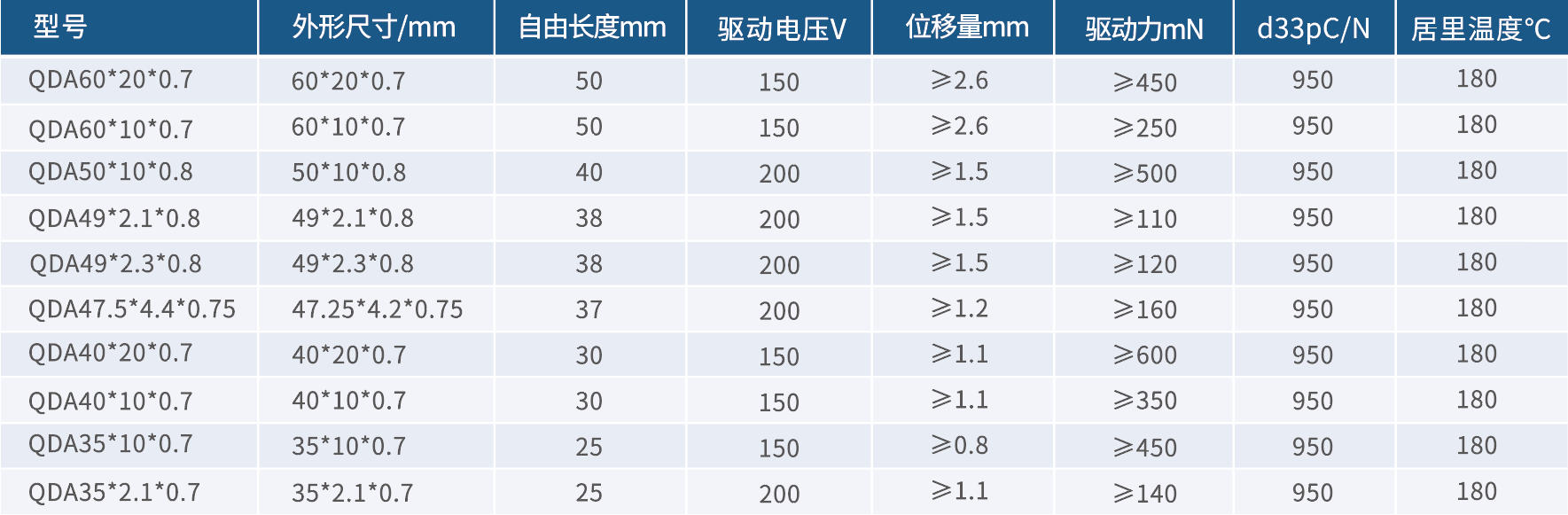 利用壓電陶瓷的逆壓電效應,在電場的驅動下產生橫向位移的彎曲元件。結構上采用兩片壓電陶瓷及高韌性彈性芯緊密粘接而成,在交變電源的驅動下產生相應的振動幅度,應用于微位移驅動裝置。